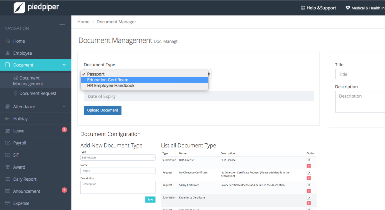 - Store and view employee personal documents such as passports, ID, marriage & educational certificates.