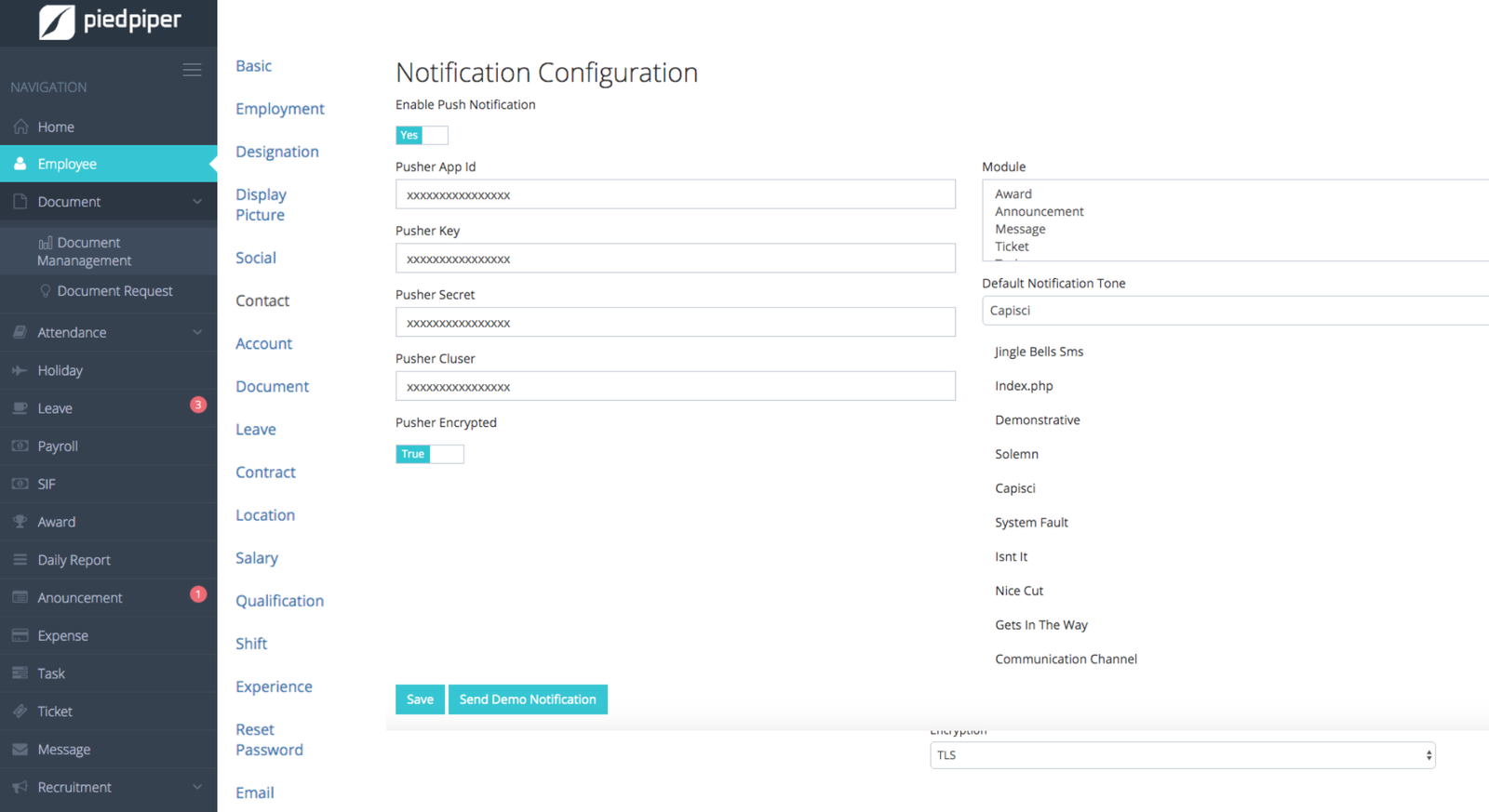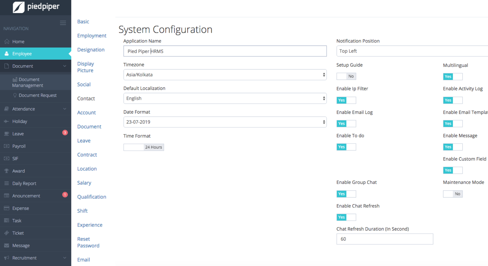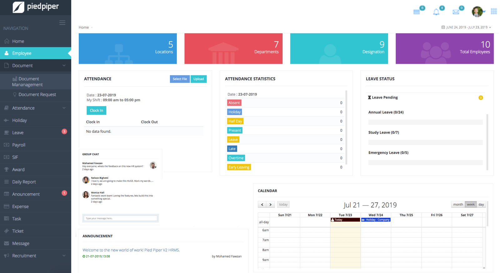 - Get SMS, email and in app notifications on Holidays given by regional law & custom company policy.