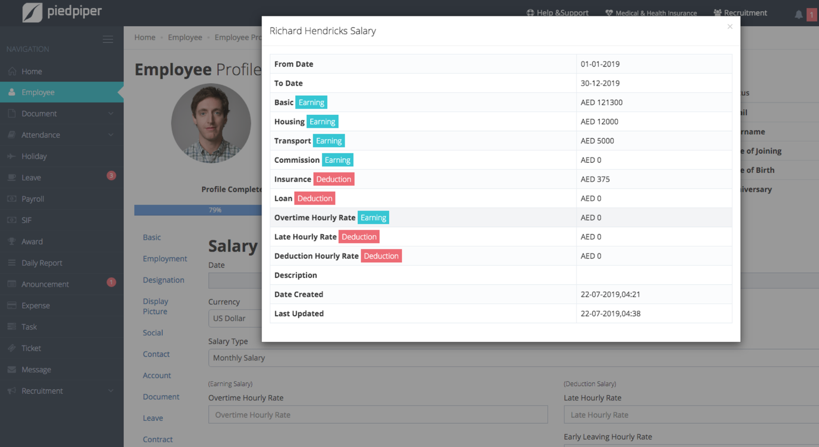 - Custom salary types: Add custom salary types, EG Housing Allowance and store/show employees salary history over time.