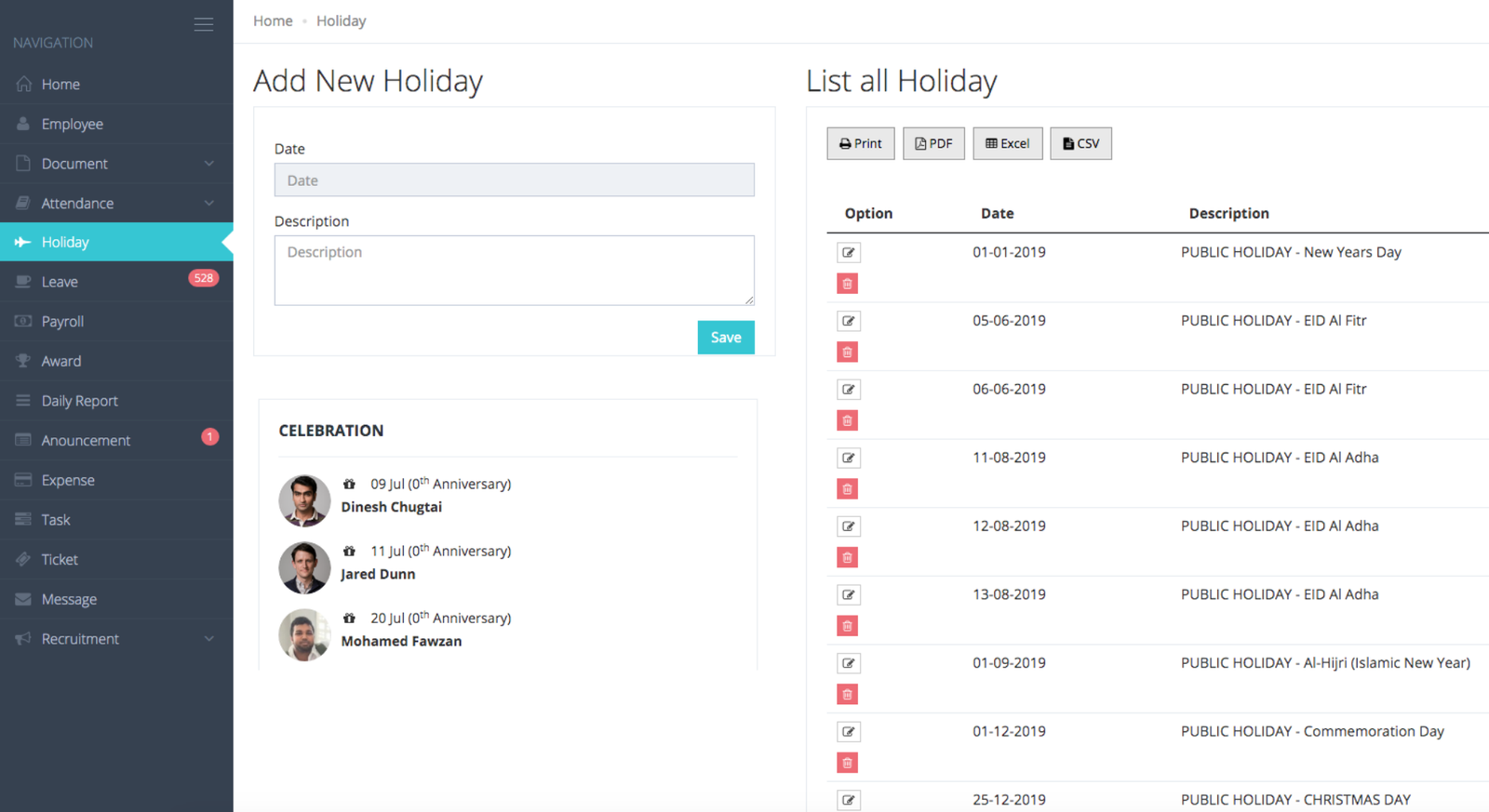 - Easy viewer: Staff can see what holidays are coming up and plan annual vacation around private/public sector holidays.