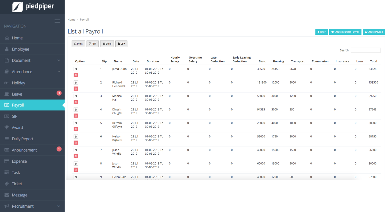 - Custom salary heads: Add custom salary heads, for example Basic, Transport, Housing Allowance and store/show filter options for employees salary history.