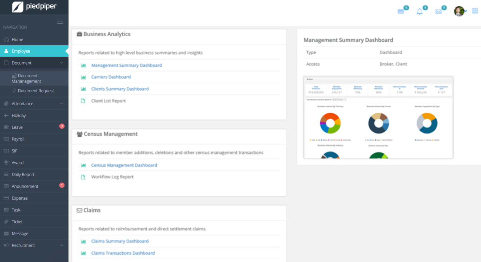 Personalised Interactive dashboard showing a quick view of the company, upcoming dates and team availability all updated instantly throughout the day.